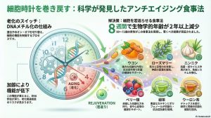 最新の臨床研究により、「特定の食事法をわずか8週間続けるだけで、生物学的年齢が平均3歳以上も若返る可能性がある」ことが実証されました。これは遺伝子レベルでの変化を伴う、極めて科学的なアプローチです。