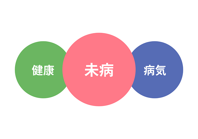 人の健康は「健康」か「病気」の二択ではなく、その間に連続した変化の波があります。未病とは、この中間に位置する状態を指します。具体的には、