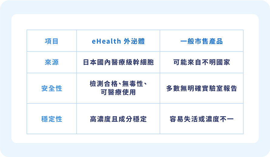 eHealth目前使用的外泌體來源之一,即為牙髓來源產品,通過日本相關機構安全認證