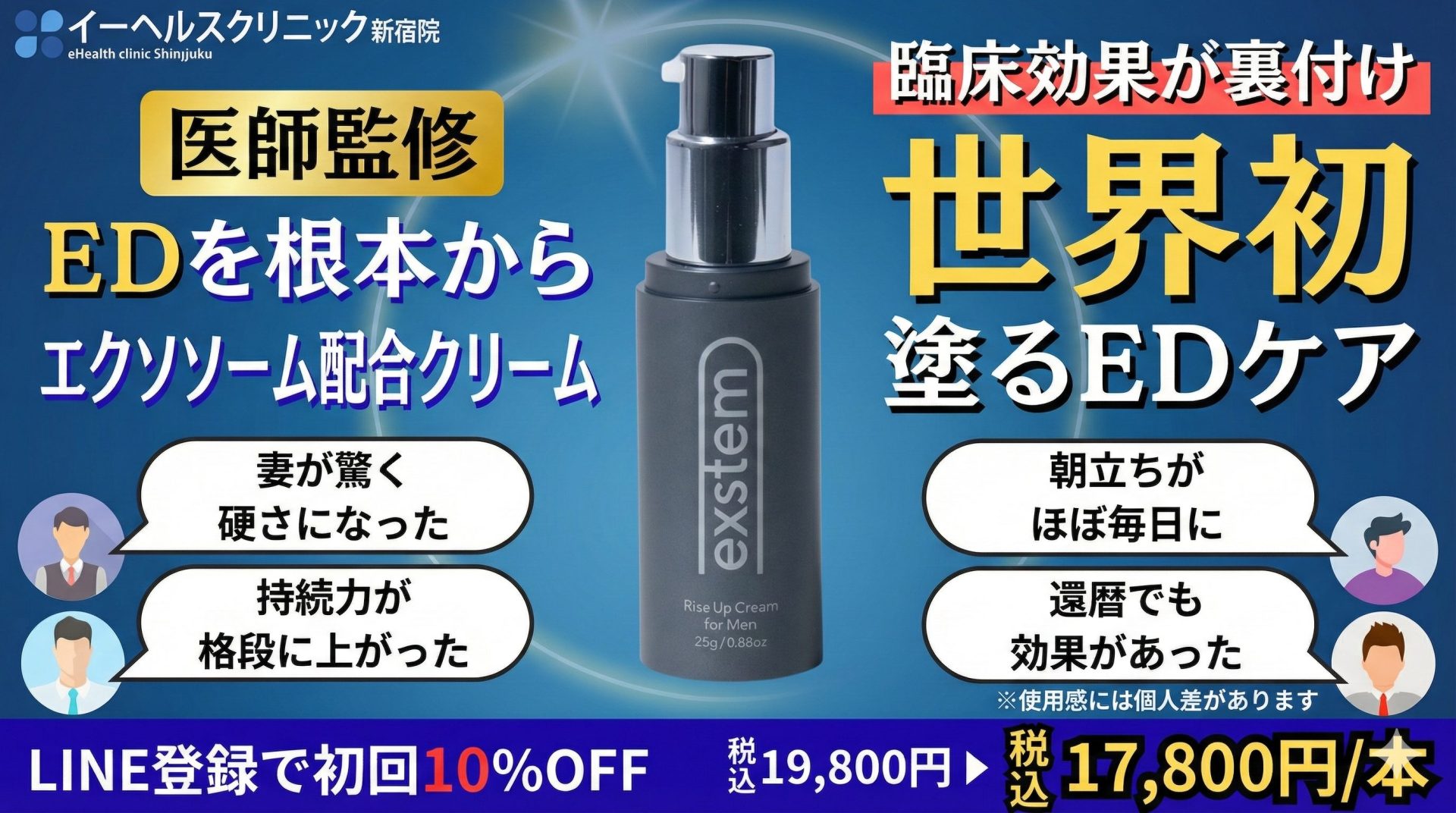 【医師解説】幹細胞培養上清・エクソソーム配合EDクリーム「エクステム」の正しい使い方